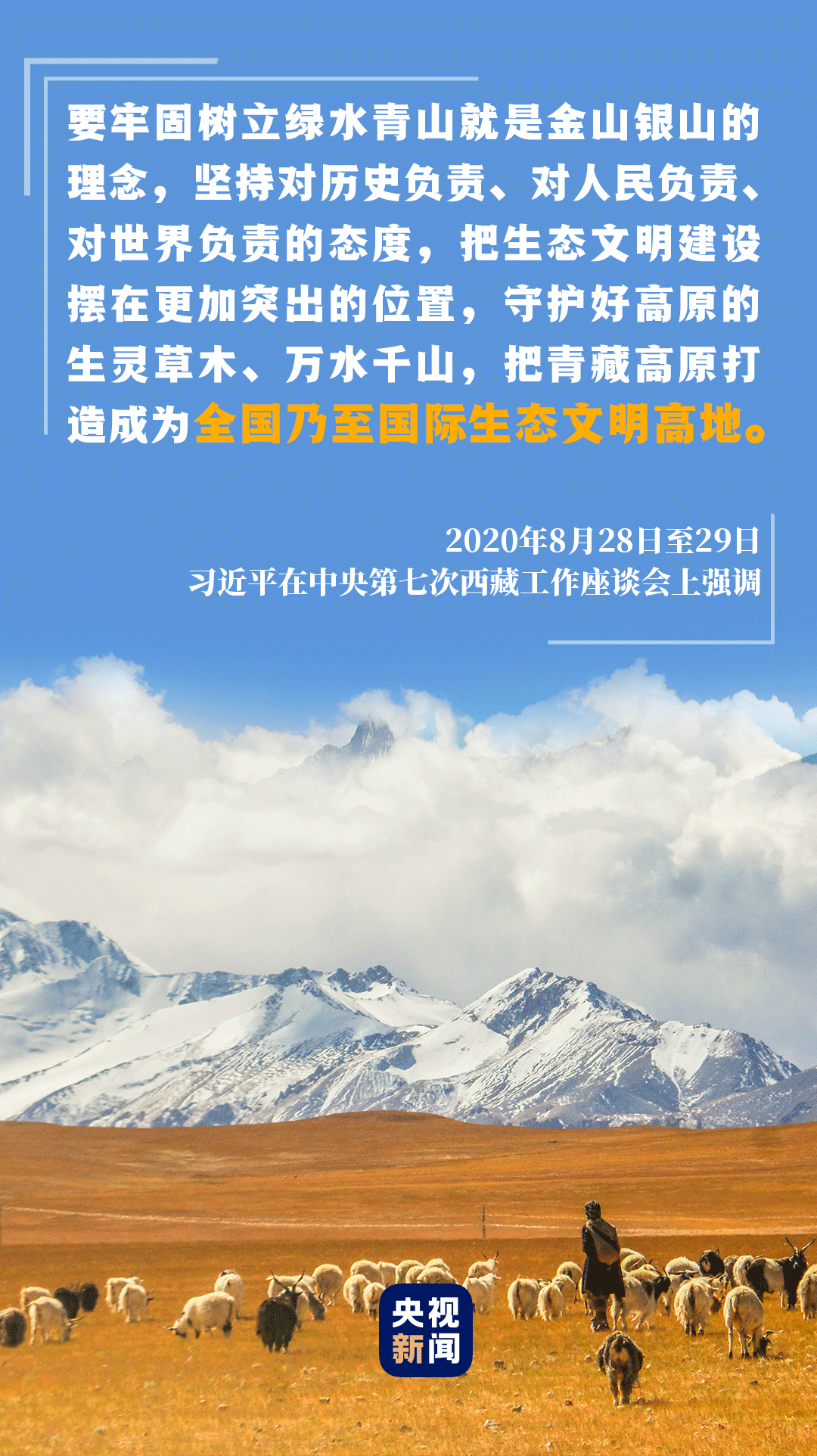 在中央第七次西藏工作座谈会上,习近平强调,保护好青藏高原生态就是对中华民族生存和发展的最大贡献。
