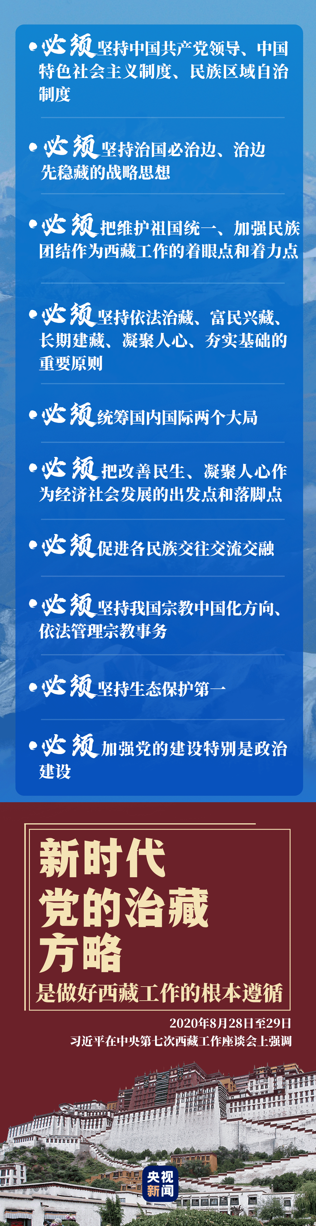 “面对新形势新任务,必须全面贯彻新时代党的治藏方略。”8月28日至29日,中央第七次西藏工作座谈会在北京召开。习近平总书记深入分析了当前西藏工作面临的形势,全面阐释了新时代党的治藏方略。