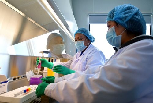 西藏自治区疾控中心实验室工作人员进行包虫病血清检测(2018年3月23日摄)。新华社记者 晋美多吉 摄