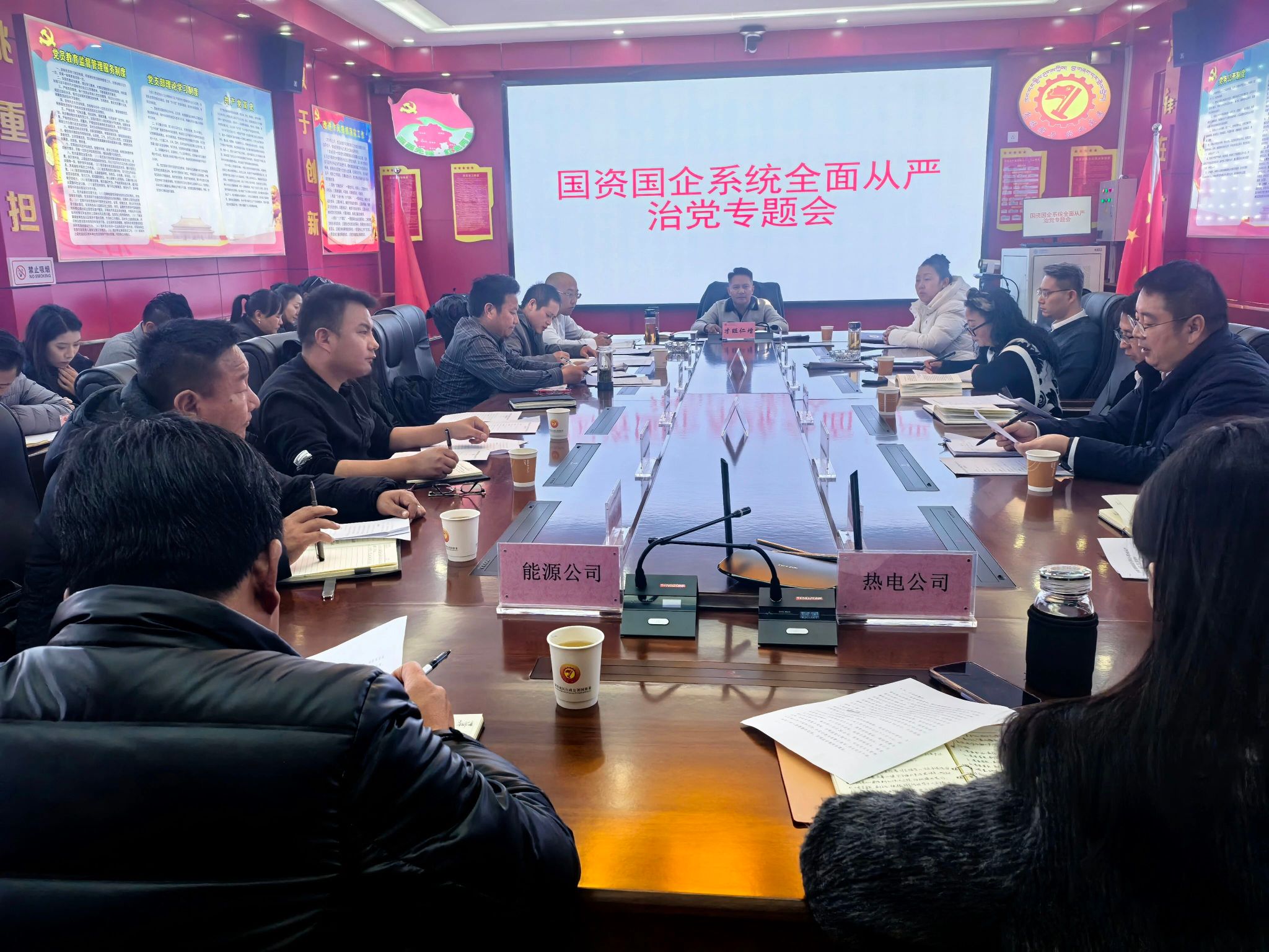 11月19日,行署国资委党委书记才旺仁增同志主持召开国资国企系统全面从严治党工作专题会,集体学习《习近平谈治国理政(第五卷)》,传达学习《中共中央办公厅印发党委(党组)落实全面从严治党主体责任规定》和《关于督促新组建国企健全制度规范权力运行堵塞管理漏洞的工作提示》,听取全面从严治党履职情况汇报,对国资国企系统全面从严治党工作进行再安排、再部署、再推进。地区纪委监委第二派驻纪检组组长边巴桑姆到会指导并讲话。
