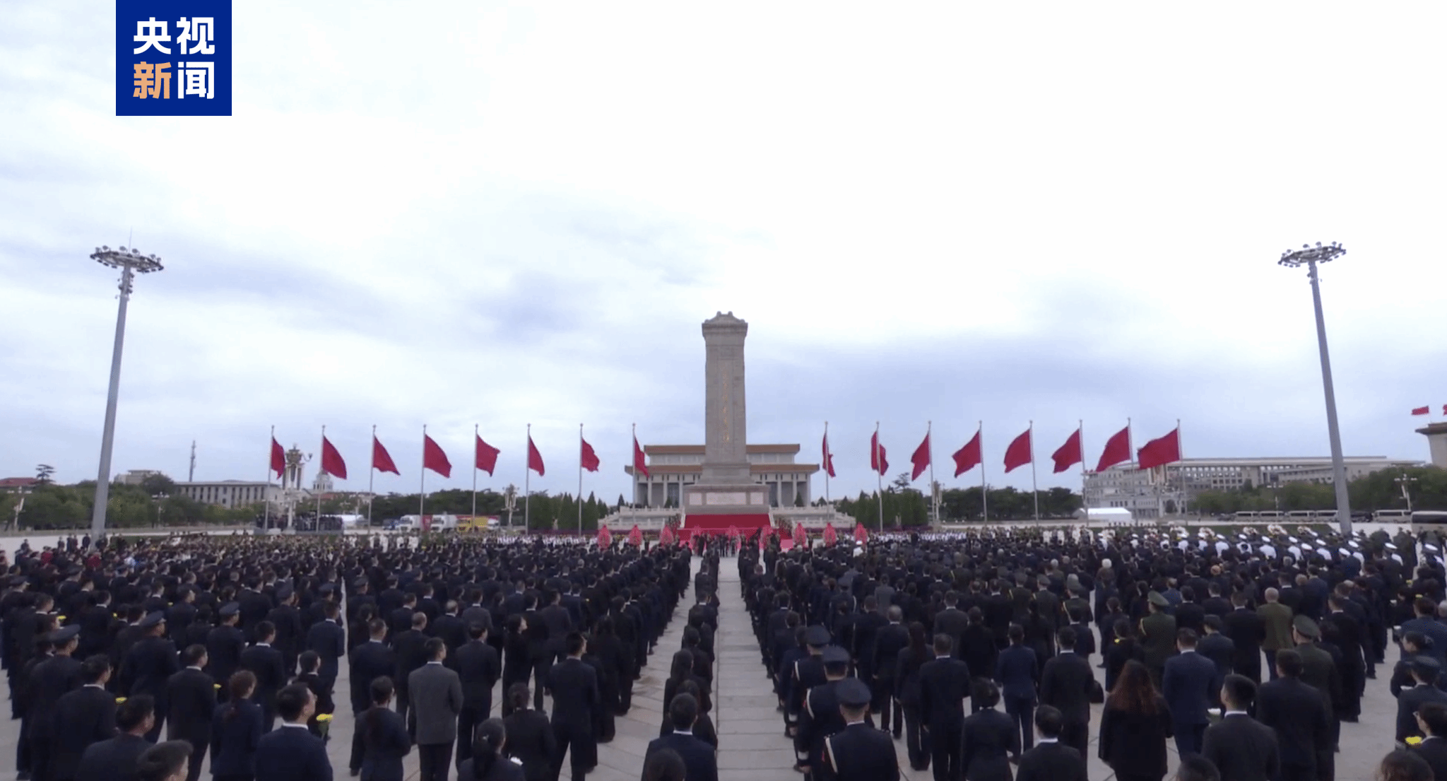 国歌唱毕,全场肃立,向为中国人民解放事业和共和国建设事业英勇献身的烈士默哀。