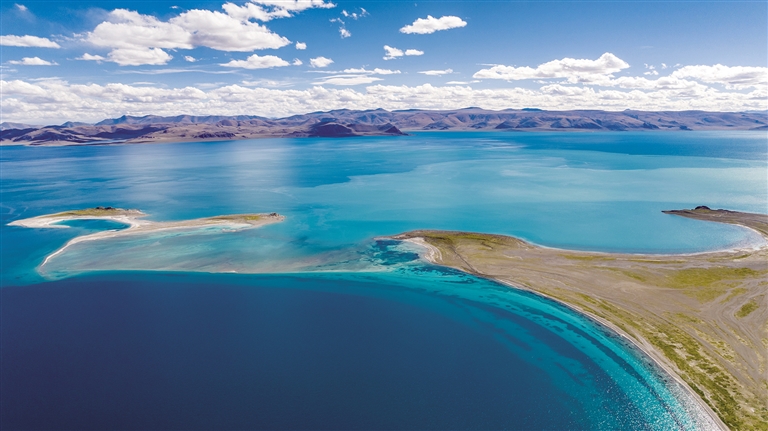 俯瞰玛旁雍错。 新华社发(旦增努布摄)