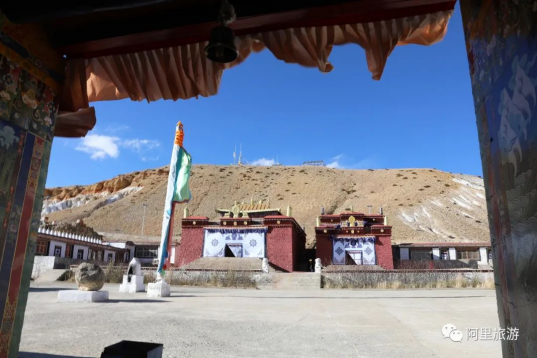 ▲古入江寺的僧人们认为寺庙对面的卡尔东,正是象雄的都城“穹隆银城”所在地,那里还可以从西面看到冈仁波齐。