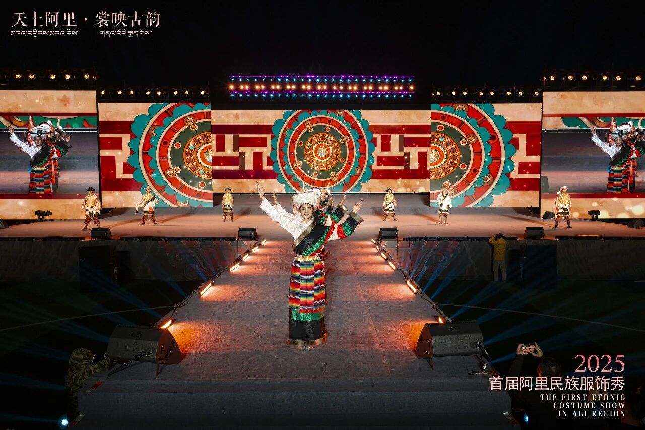 2025年,阿里地区举办了首届“天上阿里·裳映古韵”民族服饰秀,以“走秀+歌舞”的形式,集中展示了来自普兰、札达、革吉等七县的民族服饰。这场活动由《源起象雄》《缘在阿里》《圆梦中华》三个篇章组成,不仅展示了服饰之美,更传递了文化自信。