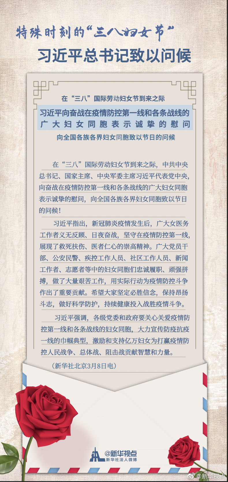 特殊时刻的“三八妇女节” 习近平总书记致以问候