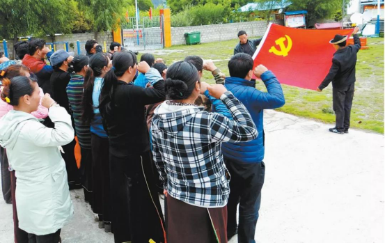 林芝市巴宜区更章村的全体党员重温入党誓词。记者麦正伟摄(资料图)