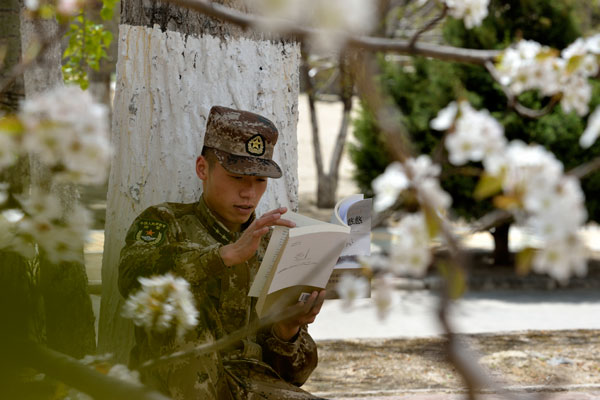 “读书可以补充精神食粮,我要持之以恒地坚持下去……”4月23日,西藏军区某部图书室里,宣传干事林茂正在畅谈读书感悟与收获。