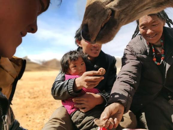 “它们还认得我,跑过来跟我玩。”向秋拉姆说,她就拿出糌粑给马鹿们吃。