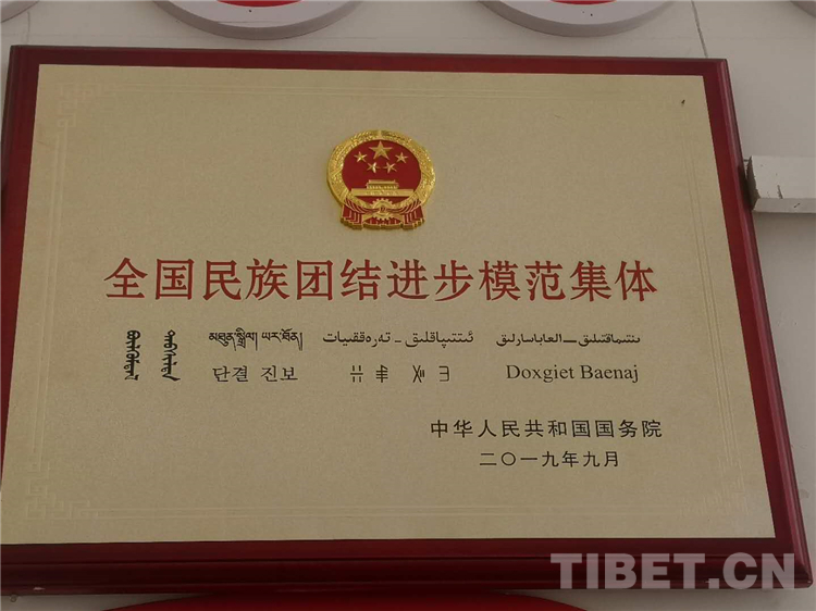 图为切娃乡被授予“全国民族团结进步模范集体”荣誉称号 摄影:王淑
