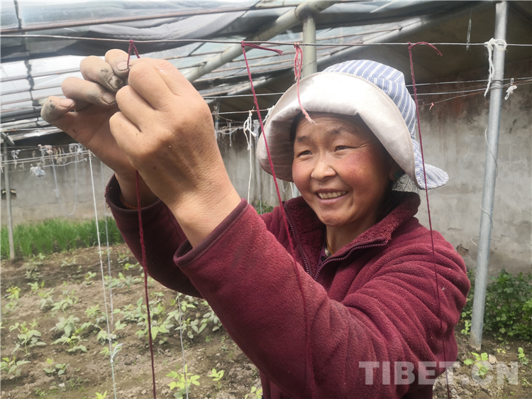 在切娃乡普纳村温室大棚里,总有一个劳作的身影,浇水、拔草、育苗每一个步骤熟稔于心,动作干脆利落。她就是普纳村村民央珍,在丈夫外出务工的时间里,4座温室大棚均由她照看打理。