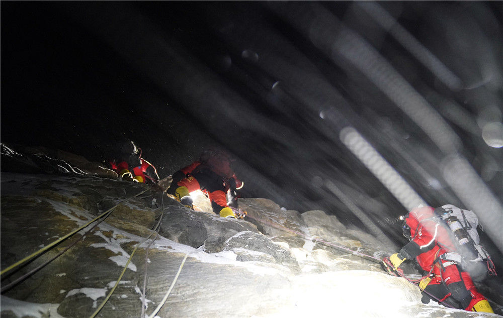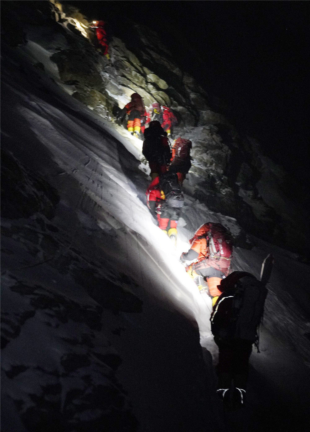 5月27日,2020珠峰高程测量登山队向珠峰峰顶挺进。新华社特约记者 扎西次仁 摄