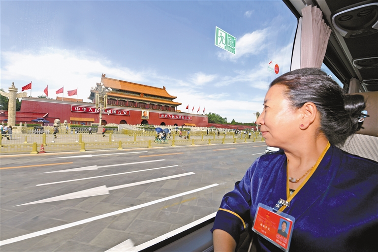 5月28日,第十三届全国人民代表大会第三次会议在北京人民大会堂举行闭幕会。图为我区全国人大代表乘坐的车辆驶过天安门广场。记者 旦增西旦 摄