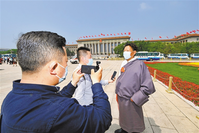 图为全国人大代表旺堆接受我区媒体记者采访。记者 旦增西旦 摄