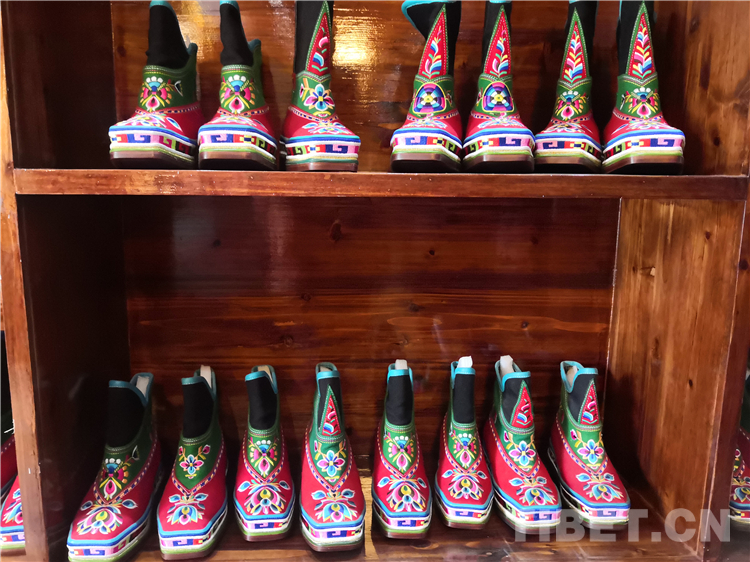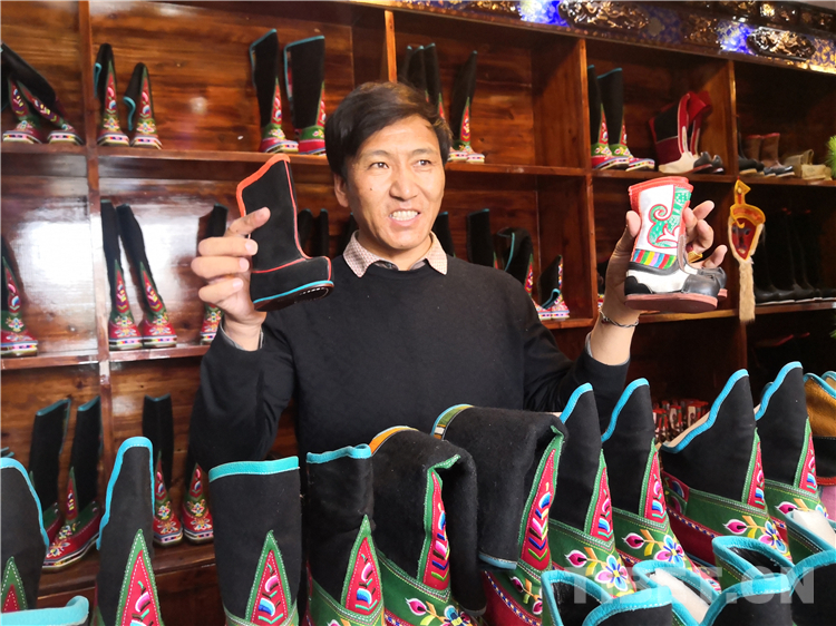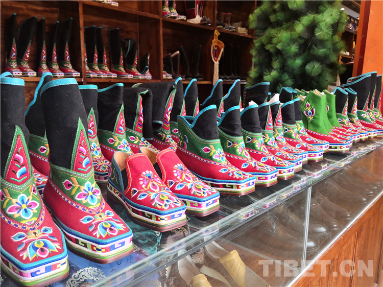 这就是嘎东藏靴。嘎东藏靴至今已有上千年历史,是藏民族传统服饰文化中一颗璀璨的明珠,拥有一双藏靴曾经是不少藏族人家的梦想。如今,现代时尚藏靴已经走入千家万户。
