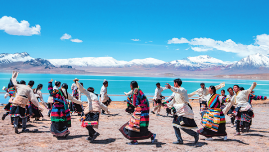 ◇生活在雪域高原上的各族人民互通互融,团结友爱,心灵相依,汇聚成建设美丽西藏的坚强力量