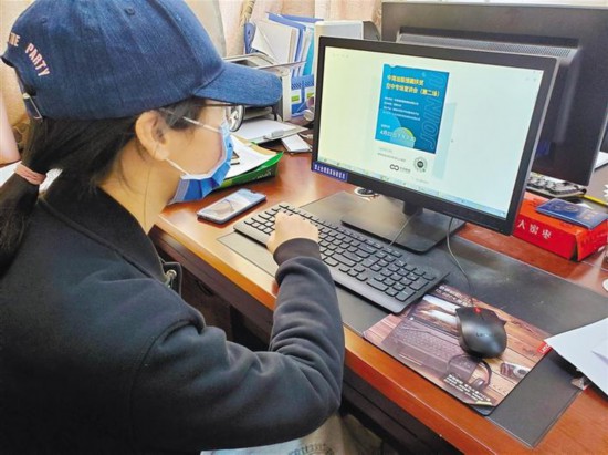 图为西藏大学2016级思想政治教育班的学生李广菊通过网络观看中海油公司组织召开的援藏扶贫空中专场宣讲会。记者 潘璐 摄