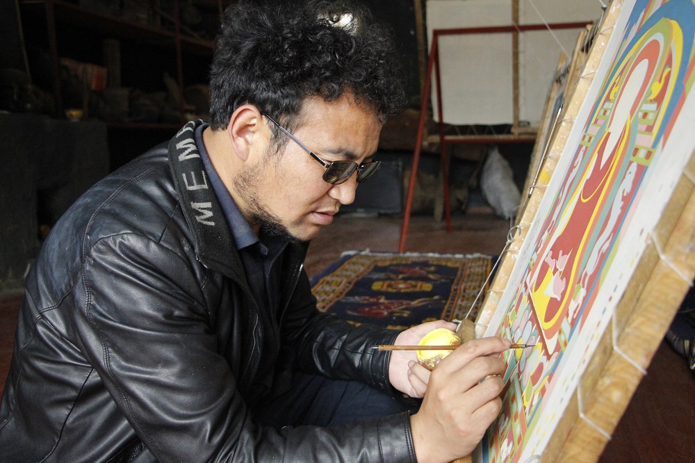 一路风雨,扎巴旦增用扎实的步伐走过,他不断思索、沉淀、完善、创新。一颗朴实、勤奋的心在高原上跳动,他用青春与热情带给世人精美隽永的唐卡作品,用双手与汗水将藏民族手工艺发扬光大。