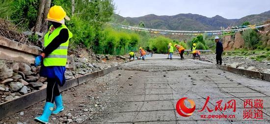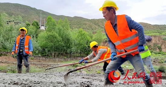 正在紧张施工的拉玉乡甭唐公路铺路现场 柴济东摄