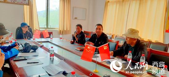 赞堂社区第一书记次仁和班子成员接受媒体采访 柴济东摄
