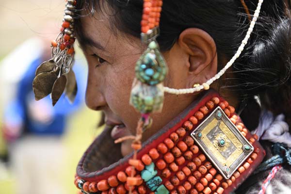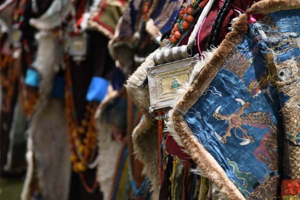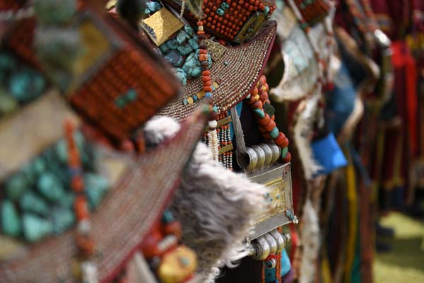 世代相传的“飞天服饰”在今天的普兰县仅存七套。由各种珍贵珠宝装饰一身的衣裙,使人一看就移不开目光。