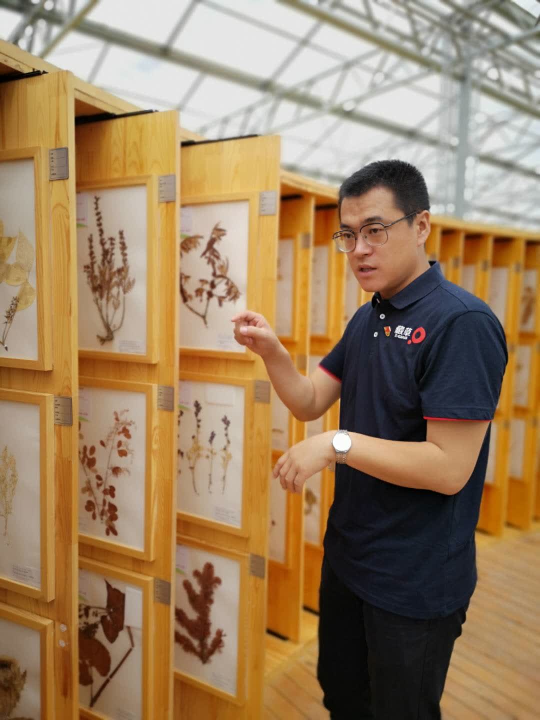 藏草研究院院长赵韦介绍野生植物标本采集情况。