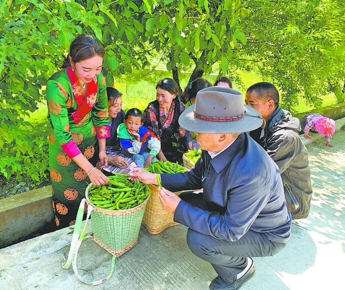 在朗县洞嘎镇滚村诺组,记者走进辣椒大棚随村民一块摘辣椒。摘下的辣椒,由专业合作社派车来收购,然后经过翻晒、加工、包装等工序后上市销售。