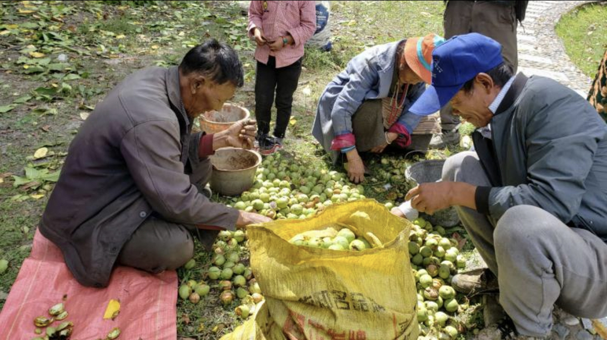 冲康村的核桃皮更是宝贝,作为一种天然的染色剂可以卖到5-10元每斤,每年都有专门的人来村里收购。