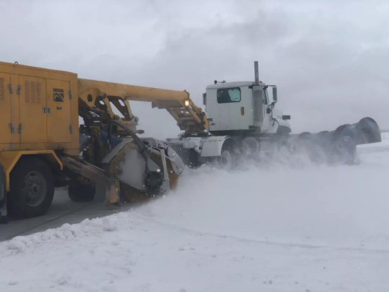 运行保障部出动扫雪车两辆,开展扫雪作业。结束了落后的人工除雪,得益于大功率除雪车这种“巨兽”,才实现了快速除雪的效率。