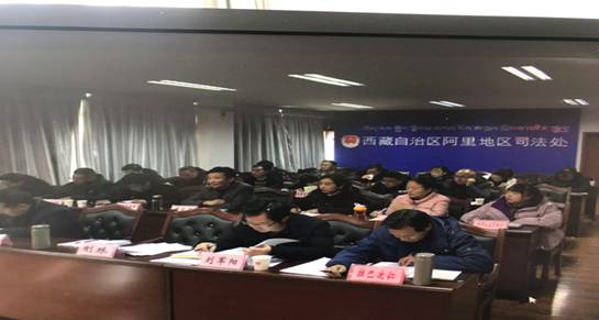 司法处党组书记、副处长曹甲伟同志对阿里地区2018年司法行政工作作了总结,并对2019年司法行政工作进行安排部署,司法处党组副书记、处长卫东主持会议,改则县司法局、日土县司法局、普兰县司法局就人民调解、普法宣传、社区矫正工作作交流发言。地区司法处在家县级领导、司法处科级以上干部职工及各县司法局负责人参加会议。
