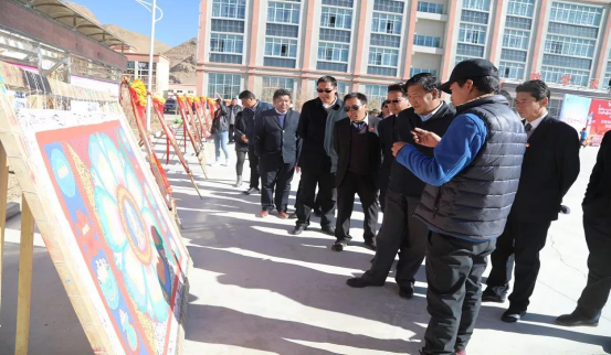 在仪式中,强巴次仁宣布职教活动周启动,并参观活动现场成果展示和观看才艺表演。