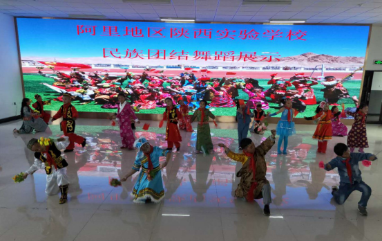 近日,阿里地区陕西实验学校开展民族团结舞蹈展示活动。