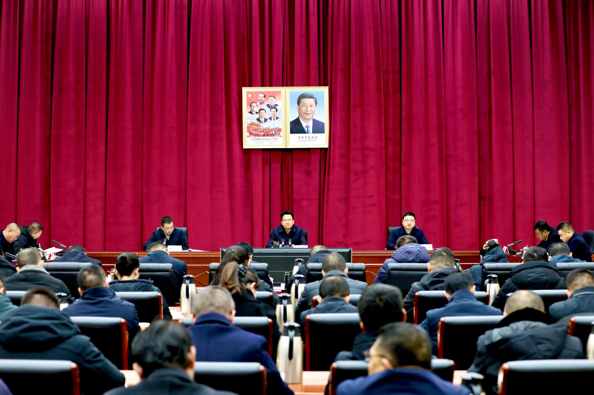 12月12日,地委书记索南丹增与新任职干部集体谈话。这是谈话现场。记者 彭琼 摄