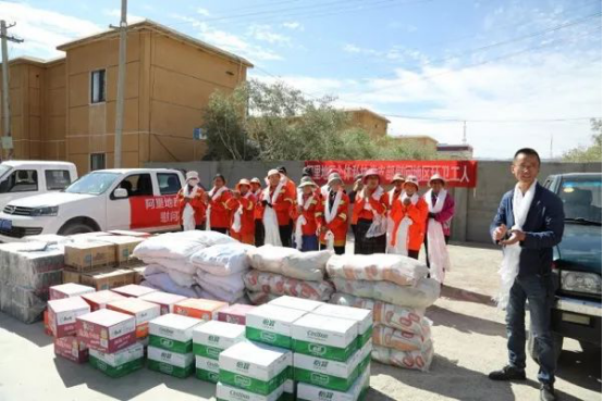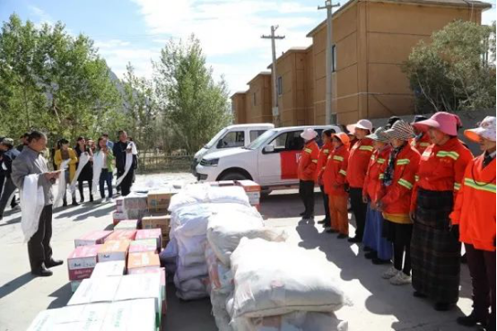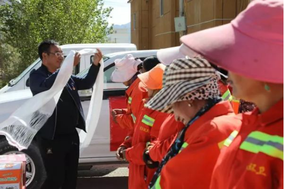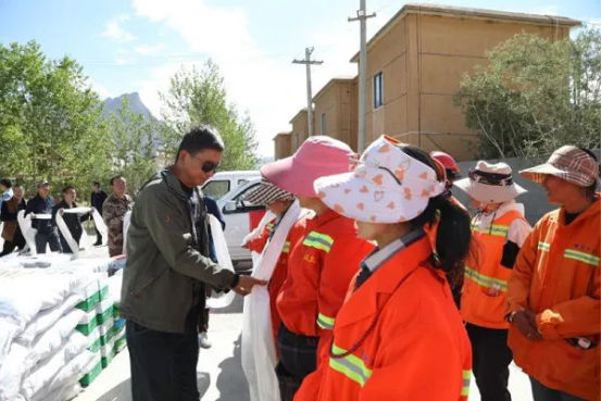 近日,阿里地区个体私协党支部自筹资金为狮泉河镇环卫工人送去价值1.3万余元的大米、面粉等生活必需品,表达对环卫工人的关爱和祝福,感谢他们在创城工作中辛勤的付出。