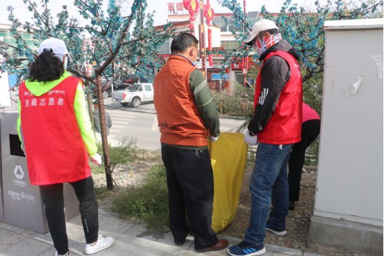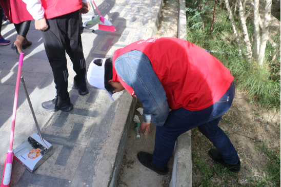 在捡拾垃圾的同时,志愿者们还向路人、街边商户、农牧民群众耐心讲解环境保护的相关知识,并发放宣传资料,用实际行动引导全地区干部和农牧民群众讲文明、树新风,养成良好的习惯。