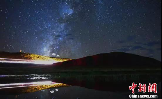 近日,从拉萨到阿里的国道318线、国道219,单程约1500公里的道路沿线上高原秋色如画。图为拉萨至阿里途中拍摄的星空倒影。