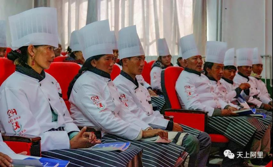 西藏自治区烹饪餐饮饭店业协会常务副会长兼秘书长沈斌,西藏自治区中华职业教育社语言老师贡嘎、技能老师强巴洛旦前来送教。此次培训大力提倡相互交流、相互了解、相互学习、相互欣赏,树立掌握职业技能理念的决心。学习内容为专题国家通用语言课程、《餐饮管理》《食品卫生知识》《设施设备的维护与保养》《餐饮技能操作》等。