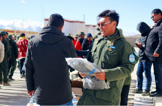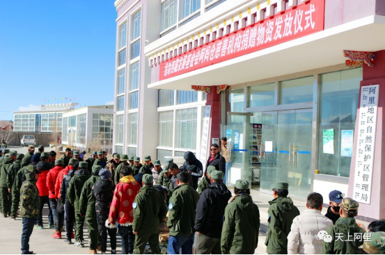 培训班开班仪式当天,西藏发展基金会阿妈仓慈善机构还举行了捐助物资发放仪式,向工作在羌塘无人区一线的专业管护员发放衣物。