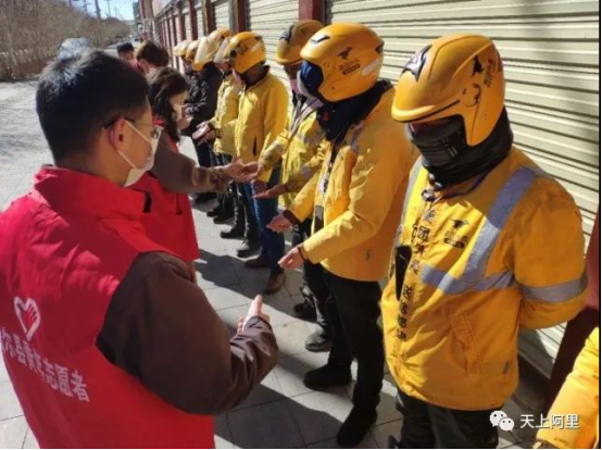 3月9日下午,为进一步提高外卖小哥疫情防控知识及自我保护能力,共青团噶尔县委员会号召返乡大学生,组成青年服务志愿队前往阿里地区美团外卖配送点开展疫情防控知识宣传活动。