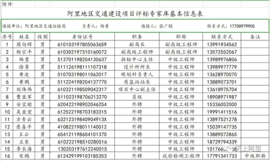 根据阿里地区行政审批局和便民服务局下发的《关于加快推进招投标有关事宜的函》中具体内容要求,需尽快组建充实阿里地区交通建设项目评标专家库。经我局局长办公会议研究,同意将周向辉、杨宗平、杨勇等16名工程师纳入到阿里交通建设项目评标专家库。现将人员名单予以公示,公示期为:2020年3月26日至2020年4月1日。