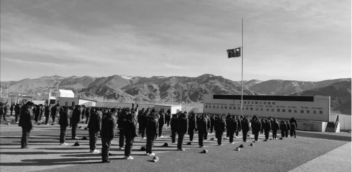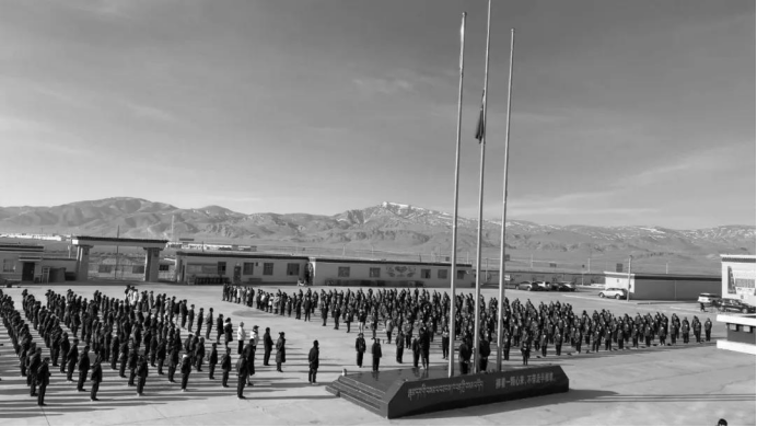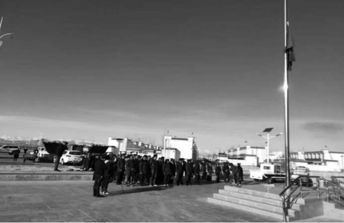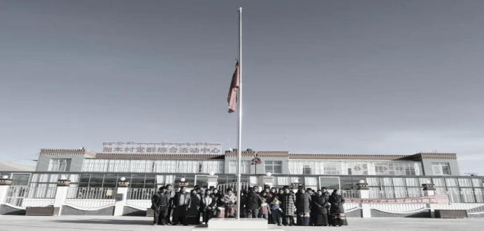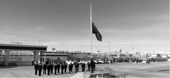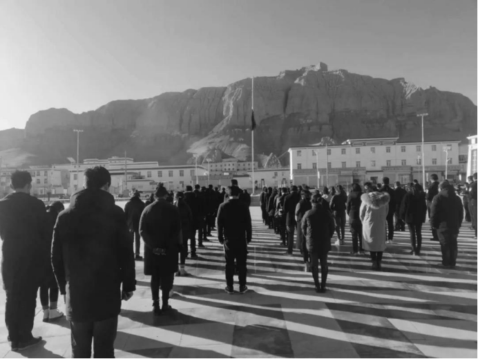 4月4号上午10时,阿里地区各部门、各单位、各村(居)举行下半旗仪式。