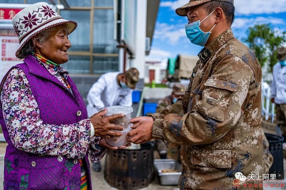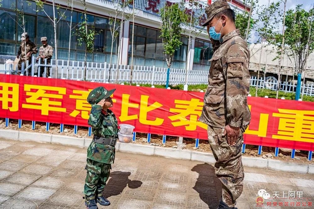 最后,驻军、驻训部队官兵召集乡周围的老人、残疾人、学生等群体,让他们体验部队生活。