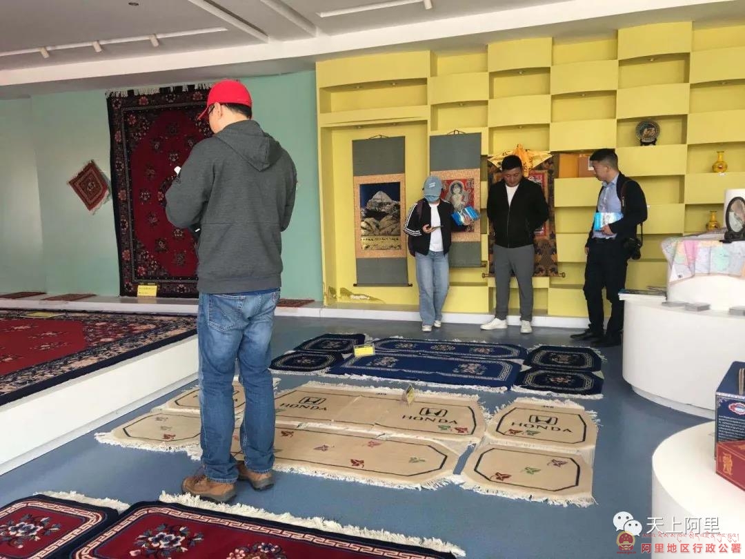 图为工作人员向记者展示加工好的地毯