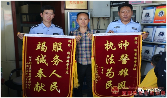 近日,狮泉河镇格桑路警务站接连收到群众送来的两面锦旗,送锦旗的群众对我站民警热心为民办事的行动给予了高度肯定。
