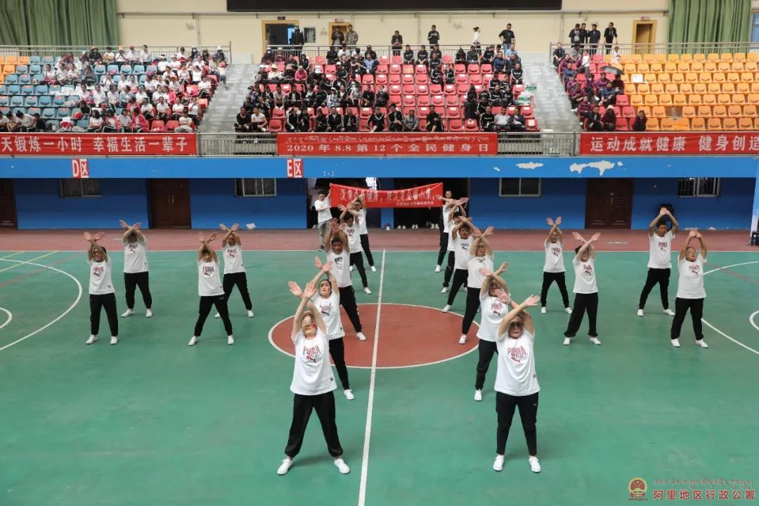 9月5日,由自治区体育局主办、阿里地区体育局承办的2020年阿里地区“全民健身日”活动暨阿里地区广播体操比赛在地区体育馆举行。来自地区全民健身成员单位、地直相关学校的13支代表队400多名干部职工通过第九套广播体操展演,倡导全民健身、展示蓬勃向上的新风貌,掀起了阿里高原浓厚的全民健身热潮,推动了广大群众树立自觉的健身意识。