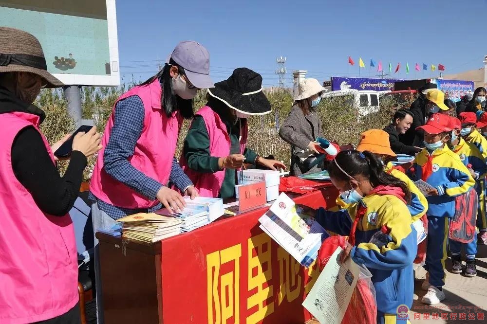 在活动中,地委网信办、噶尔县网信办、地委组织部(强基办)、地区工会、团地委、地区妇联、地区经信局、地区公安处、地区司法处、地区人社局、地区广播电视台、联通公司、移动公司等单位集中布展,结合宣传资料和展板,细致耐心的向每一位干部职工、农牧民群众、中小学生讲解网络安全相关知识,并发放书包、茶杯、雨伞、帽子、毛巾、纸巾、杯子、环保袋等宣传活动纪念品。
