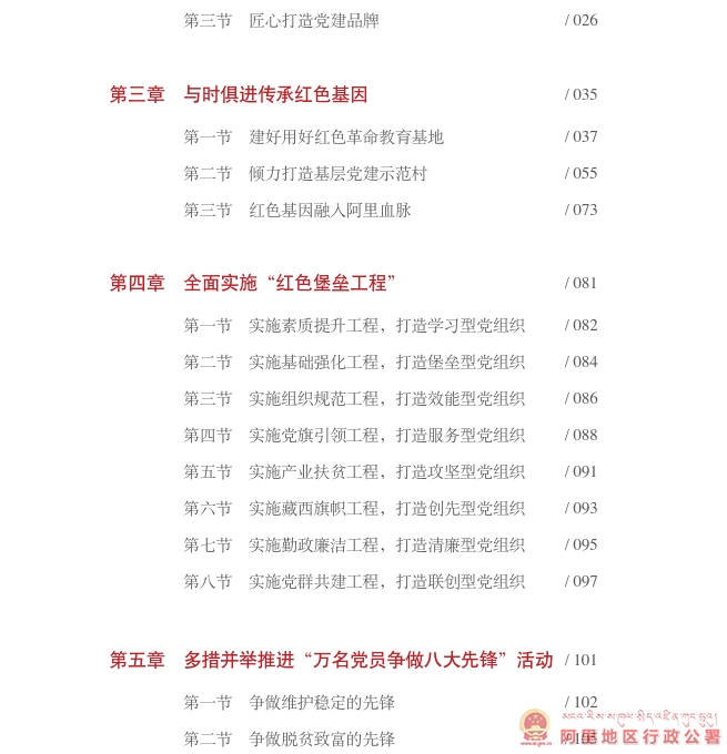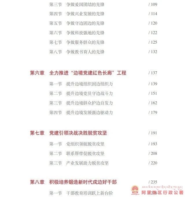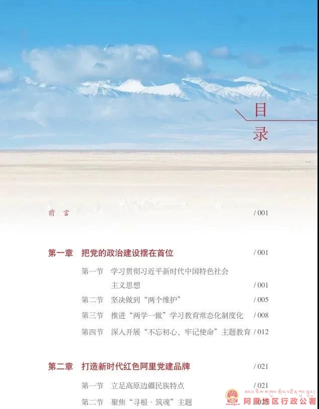 本书以图文加视频的融合出版形式,全面总结了近年来阿里地区党建品牌创建成果及有益经验,反映了新时代阿里基层党建和组织工作面貌,展现了阿里各级党组织和各族党员干部群众在党的领导下、在新思想指引下维护藏西边境和平稳定、实现边疆振兴和赶超式发展的壮阔场景,唱响了坚定不移跟党走、努力实现中华民族伟大复兴中国梦阿里篇章的时代强音。阿里地区全力推动新时代党建工作高质量发展,努力写好阿里发展篇章,讲好中国发展故事,不仅是藏西边境上的一面旗帜,也能给各级组织部门和组工干部进一步推动基层党建工作创新提供有效借鉴,值得向全国党员干部推荐。