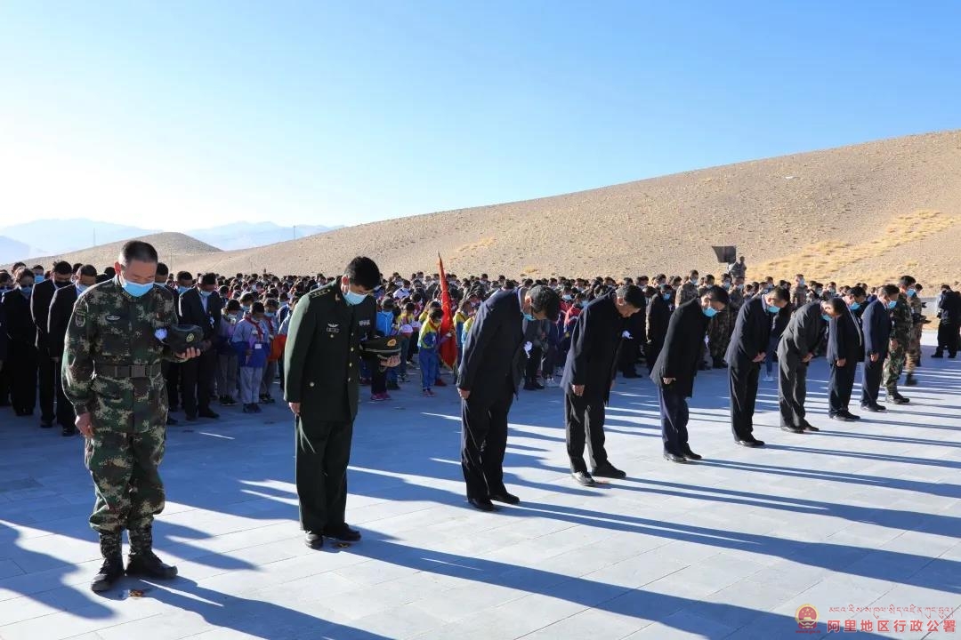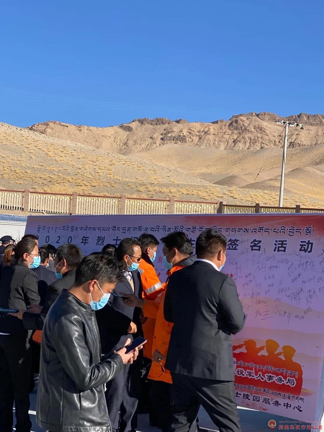 随后,参加活动的全体人员缓缓绕行纪念碑一周,敬献小白花,并在现场设立的烈士纪念日主题签字展板上签字留言,深切缅怀为阿里和平解放、民主改革、社会主义革命和建设各个时期不畏艰险、英勇献身的革命先烈。