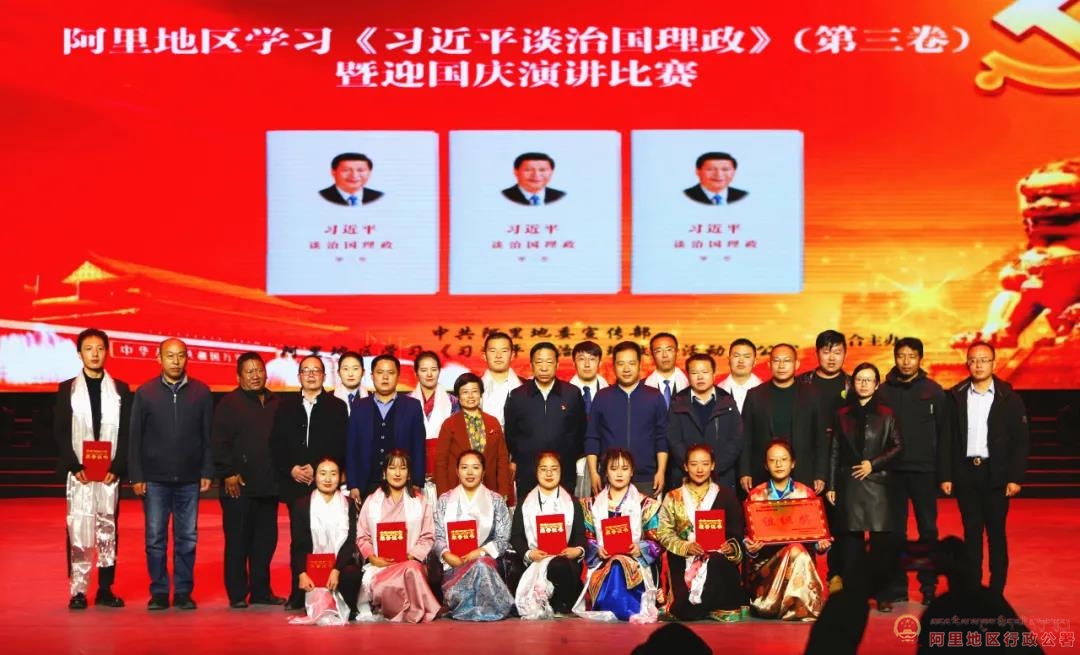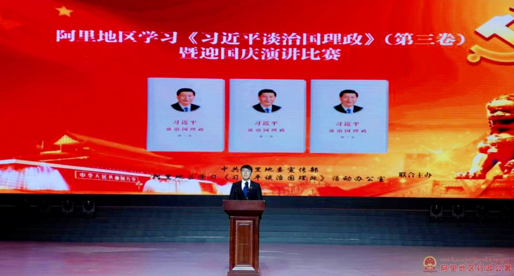 9月30日,由阿里地委宣传部和阿里地区学习《习近平谈治国理政》办公室联合主办的阿里地区学习《习近平谈治国理政》第三卷暨迎国庆演讲比赛落下帷幕。来自噶尔县扶贫办的谷涛以卓越的风采、生动感人的内容和真挚的情感深深打动现场评委和现场观众获得演讲比赛一等奖,来自措勤县中学的次旺曲珍、阿里地区广播电视台的达瓦拉姆分别获得二等奖。