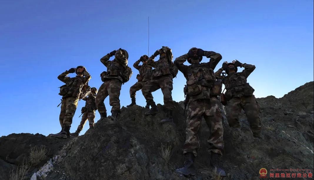 2020年10月1日,阿里军分区某边防团巡逻分队官兵组织观察。