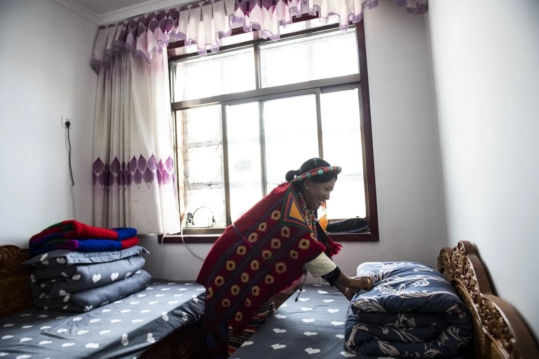 2017年,42岁的洛桑群培不甘心一直穷下去,又适逢党的好政策大力扶持,在这样的东风下,他积极参加村里开展的脱贫攻坚工作,先是向银行贷款三万元,加上全家的四万元积蓄,承接了萨让村集体房屋,开起了家庭旅馆和商店。政府出资给他家的旅馆配备了桌子、床等基本设施,旅馆营业后,仅当年营业额就达到了5万元左右。